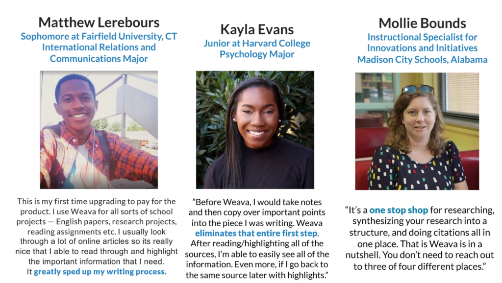 Widely embraced as an invaluable study tool, Weava is a browser extension and a mobile application that is already being used by more than 700,000 individuals around the world. More than 60% of the users are students from 1,000+ secondary and higher educational institutions – including Brown, Yale, Princeton, and Harvard, among many others.