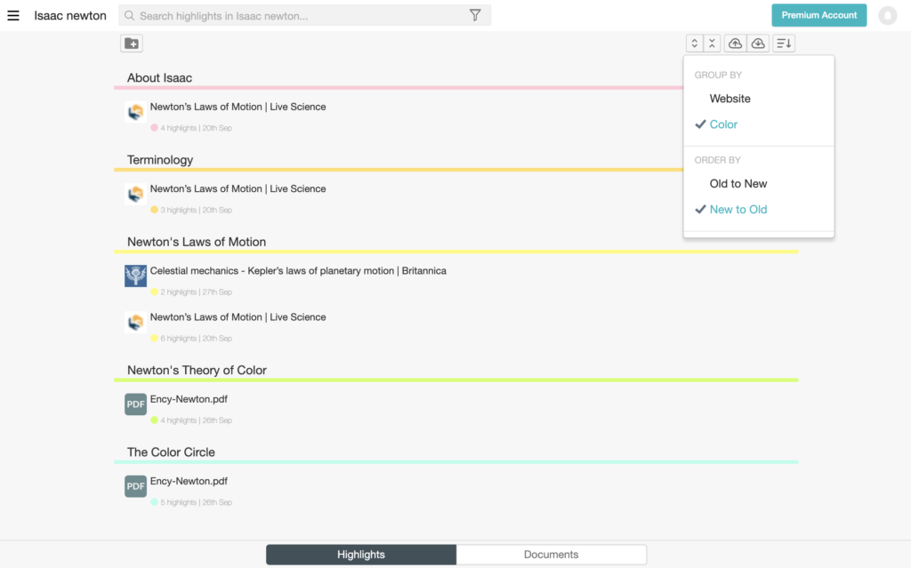 Weava also allows you to group your highlights across different websites and PDF files by color. This makes it much easier for you to organize and visualize your research especially when your highlighters are color-labelled. To learn more about color-labelling, you can refer to our “Highlight with Weava” article here.
